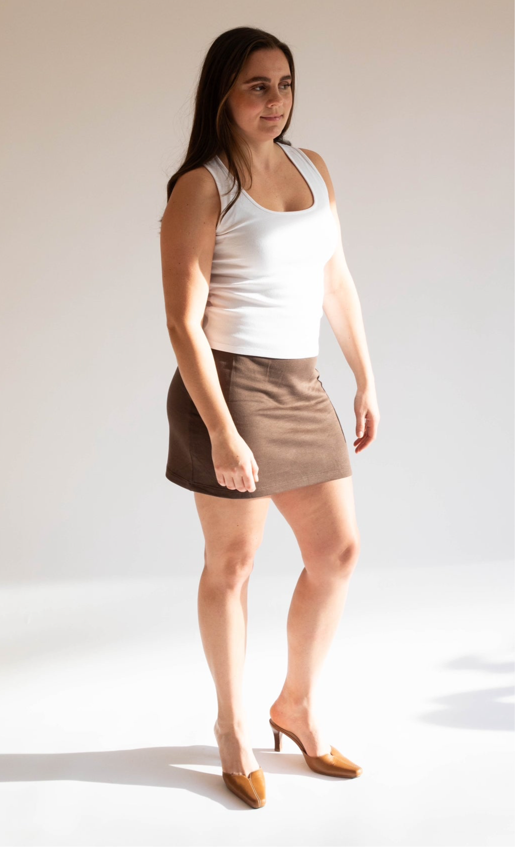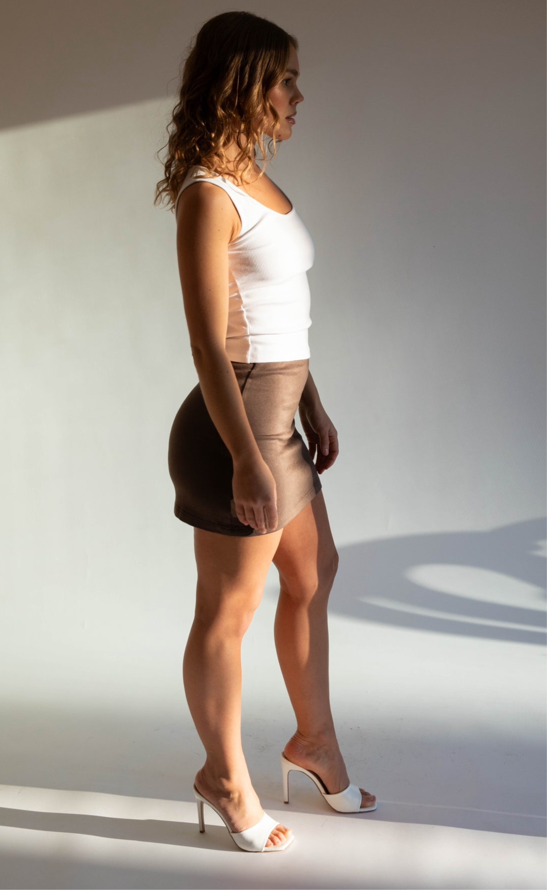 The softest material mixed with the most flattering silhouette makes the Butter Mini a must have. The elastic waistband is light which means ultimate comfort. Dress up or down, day or night. We designed this to be casual chic; being as elevated or as relaxed as you please.