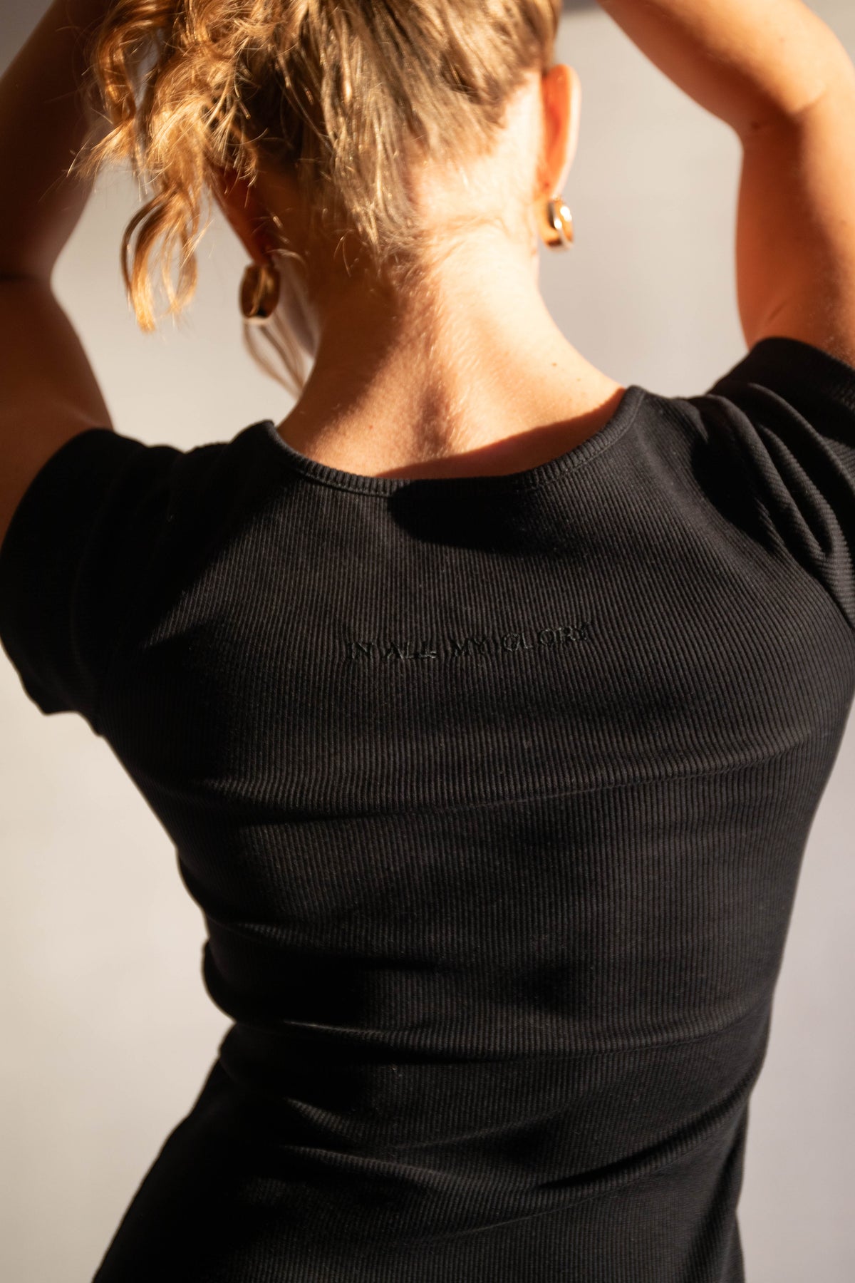 IN ALL MY GLORY tonal logo embroidered on the back neck.