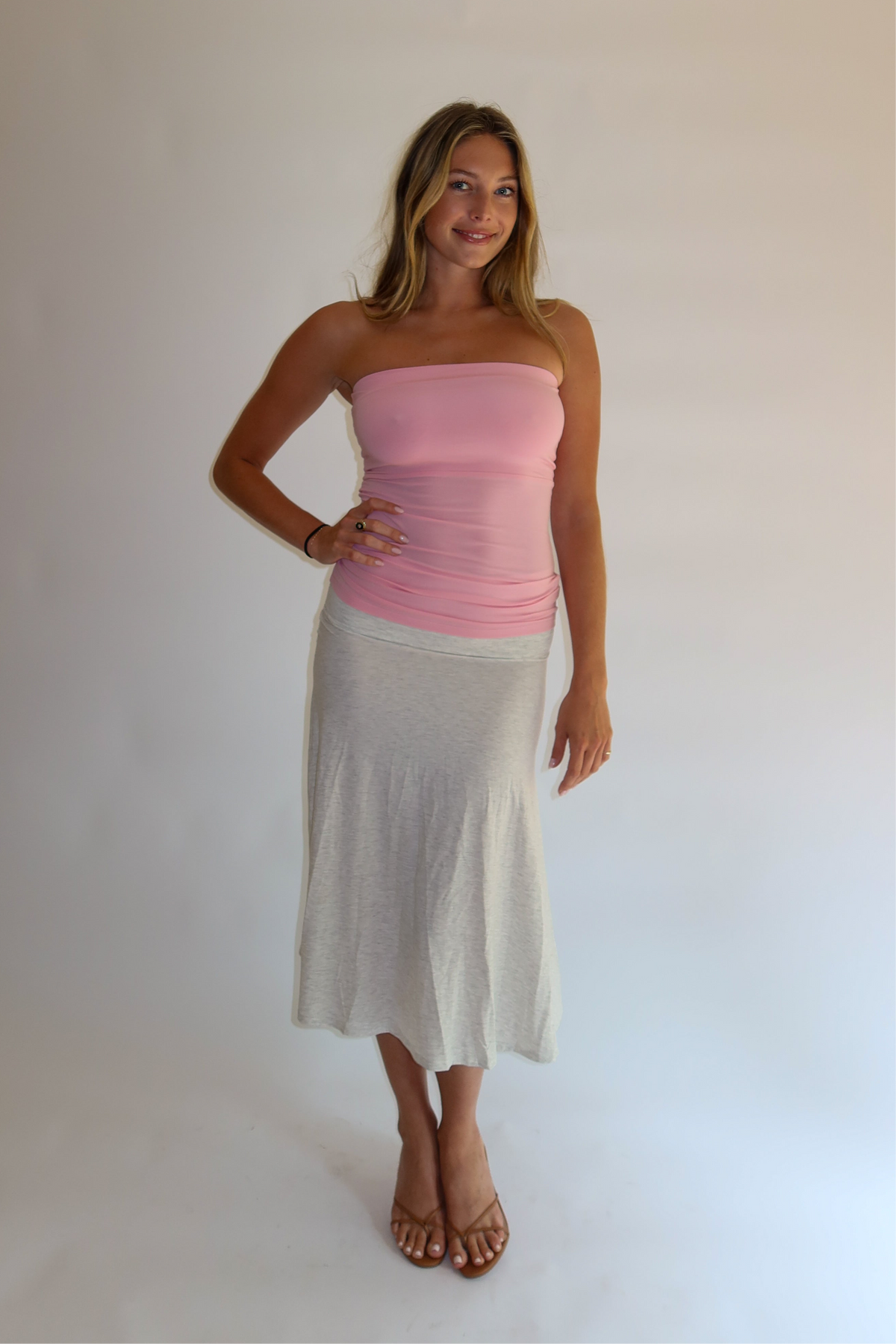 Comfort and ease. The Everyday Tube Top is a must have in your capsule wardrobe. Made from a luxurious Tencel Lyocell blend, this top is butter soft, stretchy, and ultra flattering. The elastic band on the chest is comfortable on the body. We made this top to be full length, although she is just as cute scrunched up showing a bit more skin as well. Pair with the Swish Midi Skirt to complete the set.