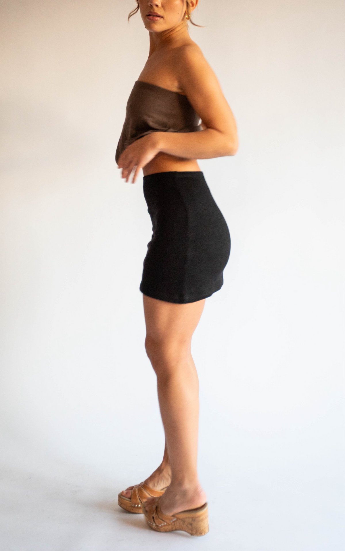 The softest material mixed with the most flattering silhouette makes the Butter Mini a must have. The elastic waistband is light which means ultimate comfort. Dress up or down, day or night. We designed this to be casual chic; being as elevated or as relaxed as you please.